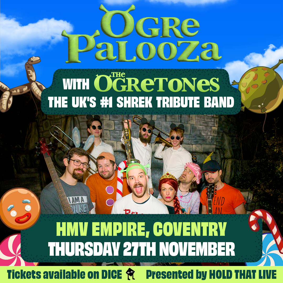 Headlined by the UK's #1 Shrek tribute band, The Ogretones - an 8-piece live band featuring Shrek, Fiona and Donkey & Friends with legendary performances that will transport you straight to the heart of the swamp. Expect hits from Smash Mouth, Counting Crows, Ricky Martin, The Proclaimers, Bonnie Tyler, David Bowie, Led Zeppelin, Buzzcocks, and more!